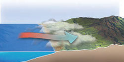 Upslope Fog Fog caused by wind pushing moist air up a slope and therefore cooling below the dew point. It can persist for many days over a wide area Upslope Fog Fog caused by wind pushing moist air up a slope and therefore cooling below the dew point. It can persist for many days over a wide area